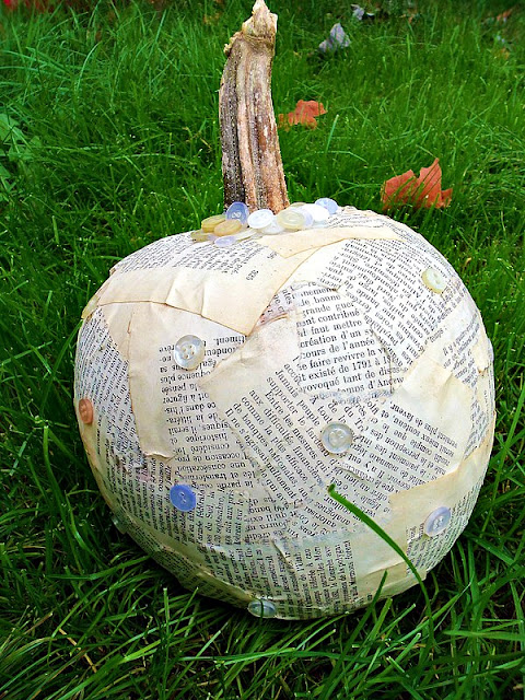 this little guy was my first craft gluecreation. i actually made the glue with just equal parts white glue and water. just shake it up and your ready to go! the buttons were from my jar and were just hot glued around the pumpkin and stem.